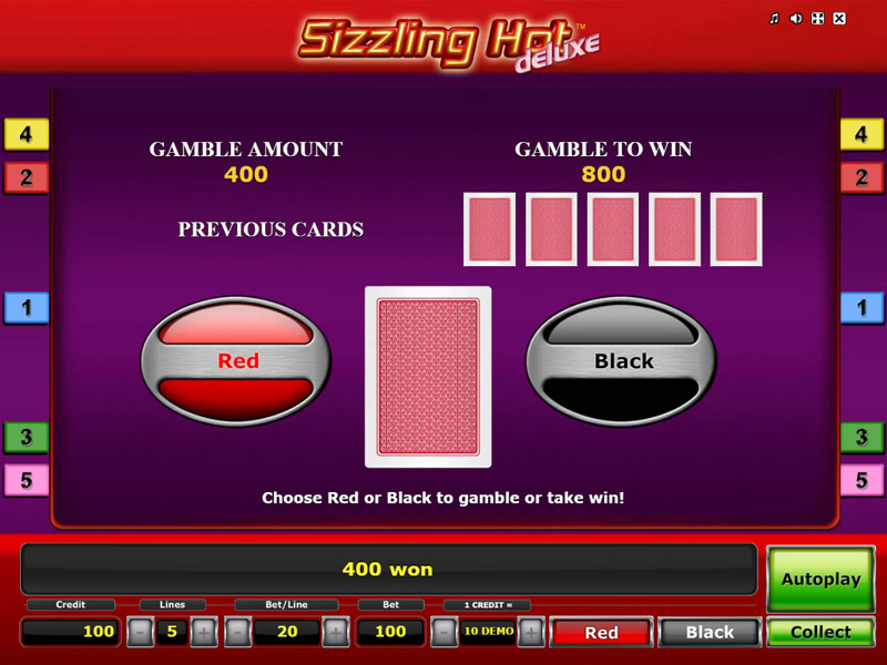 The rules of sizzling hot deluxe online are simple. You have a winning hand if you manage to get at least three identical symbols found side by side at the same active line; you can either collect or double the win, since you have the “double gamble” feature.